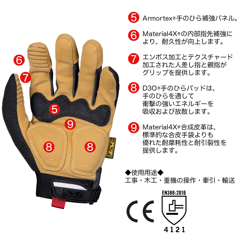 ■EN388規格: 耐摩耗レベル4、耐切創レベル1、耐引裂レベル2、耐突刺レベル1