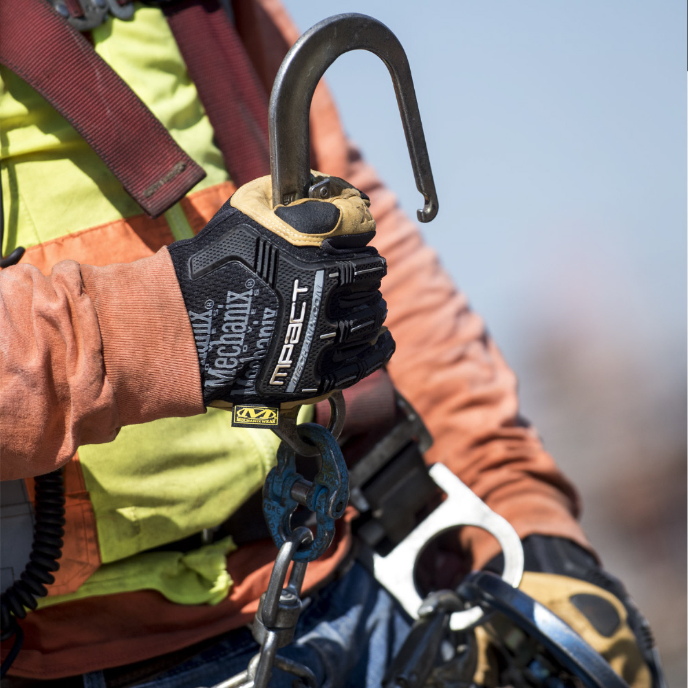 ■手のひら部分にはXRD[[R上]]素材をパッドとして採用しており、電動工具による衝撃や振動を緩和します。