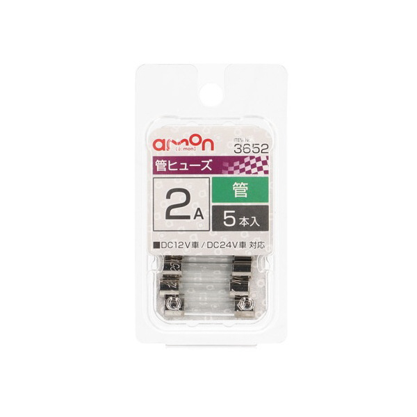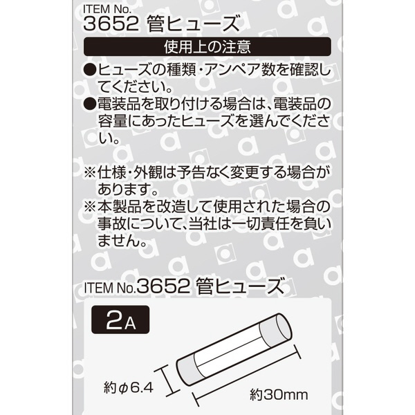 3652 管ヒューズ 2A (約φ6.4×長さ約30mm)/5本入り 3652