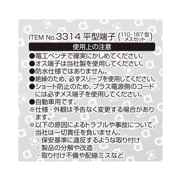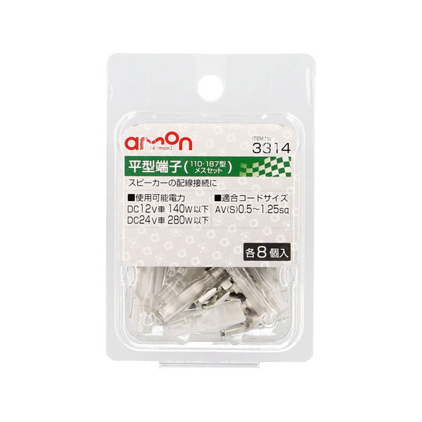3314 平型端子 メスセット スピーカー用 110・187型 AV(S)0.5〜1.25sq/各8個入り 3314