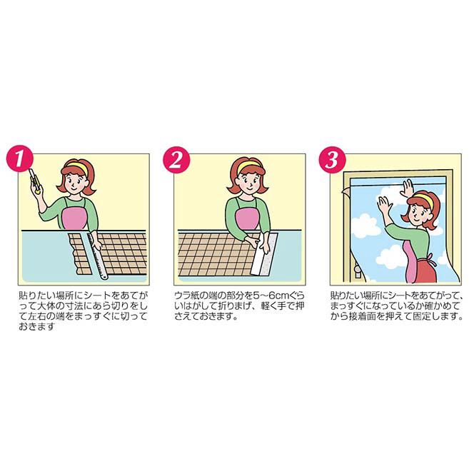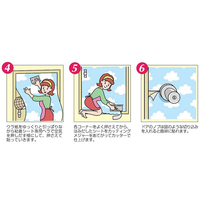 シールタイプの粘着シート。ハサミやカッターでお好みの形にカットして貼り付けられます。サイズ(約):巾45cm×長さ2m