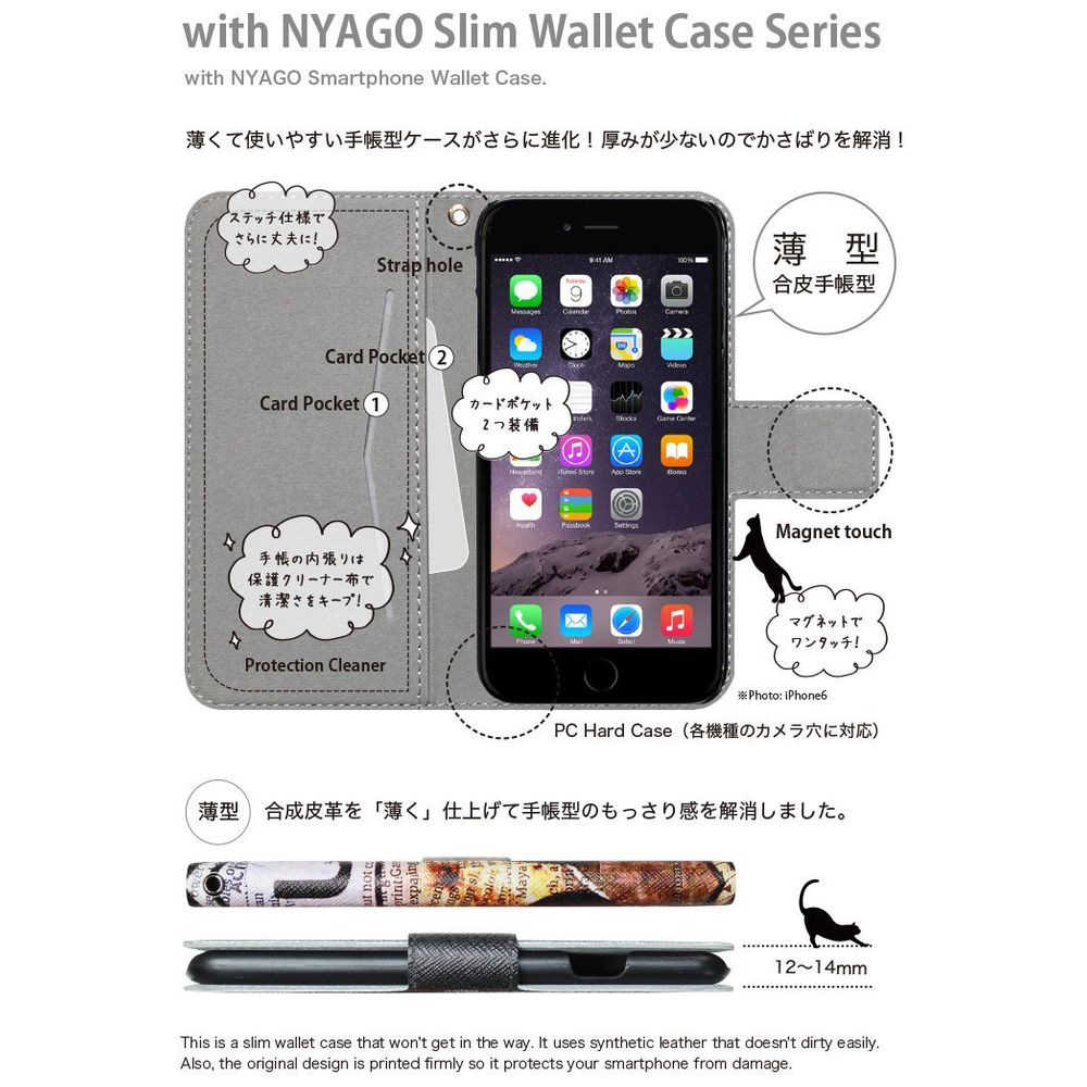 with NYAGOはお洒落でかわいい人気の猫デザインブランド。かさばらないスリム手帳型ケース。