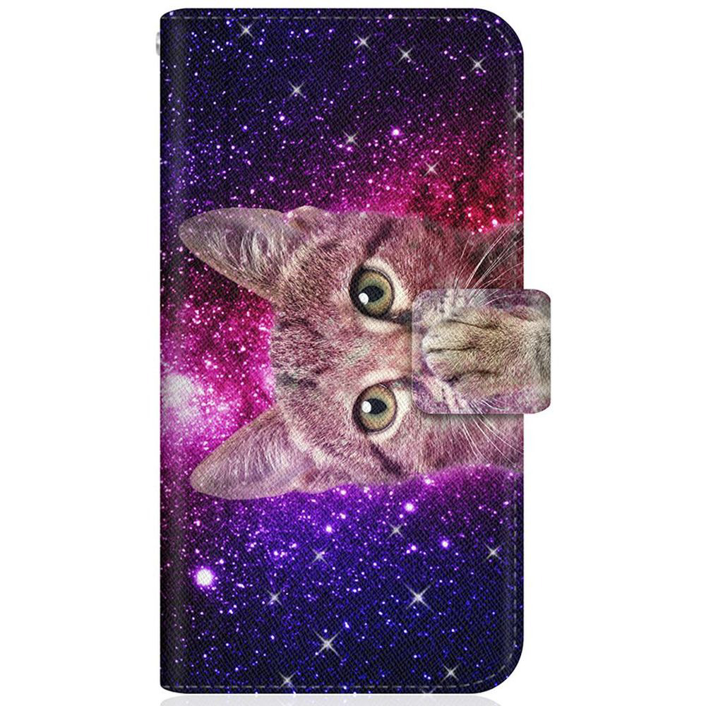 NYAGO F-41A スリム手帳型ケース NYAGO ノート キュート 肉球をペロペロするにゃ〜。 宇宙柄 だにゃ〜。