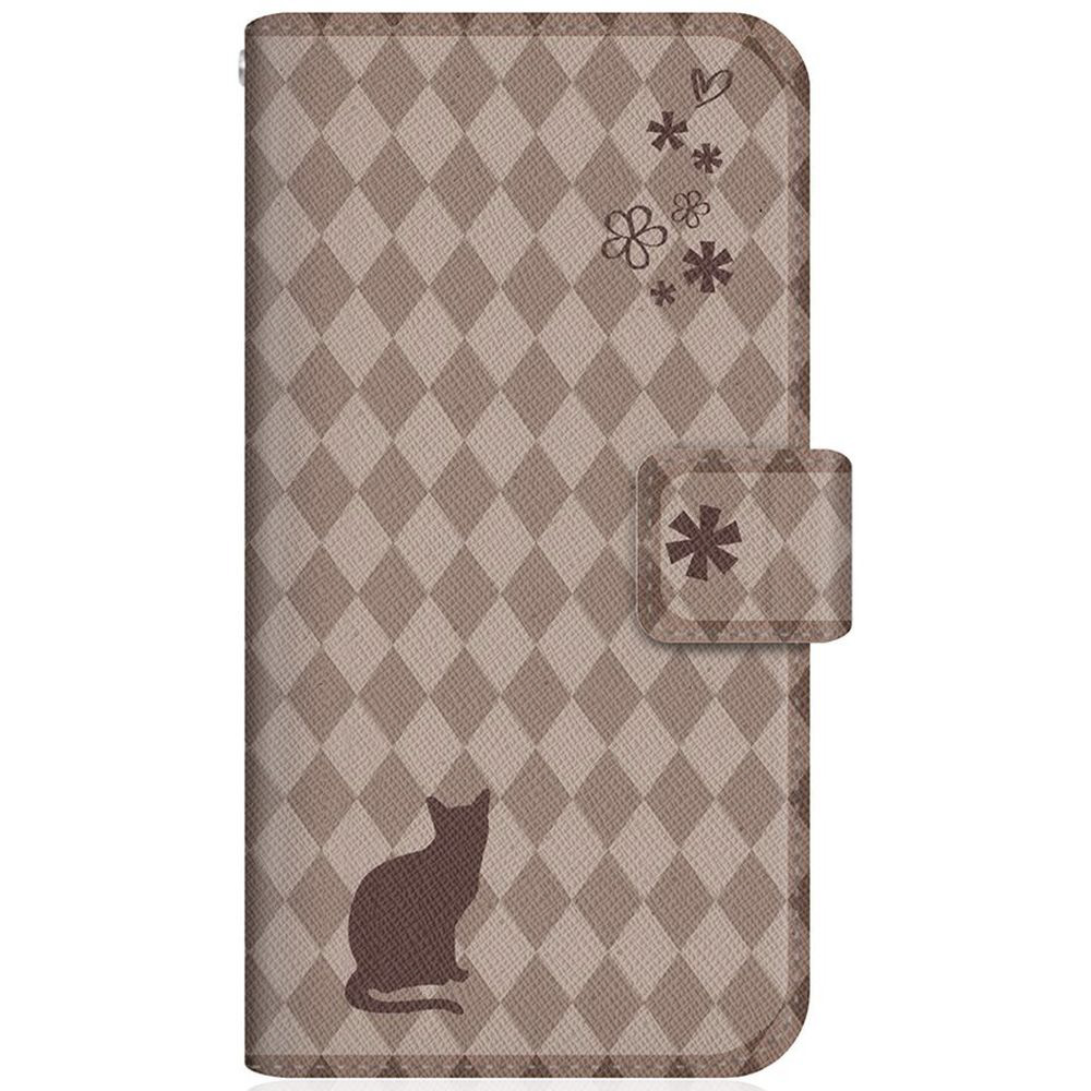 NYAGO 704SH スリム手帳型ケース NYAGO ノート フレンチ フラワー ダイアリー キャット シルエット ダイヤ柄 & おすましだにゃん。 チョコレート 704SH-BNG2S2459-78
