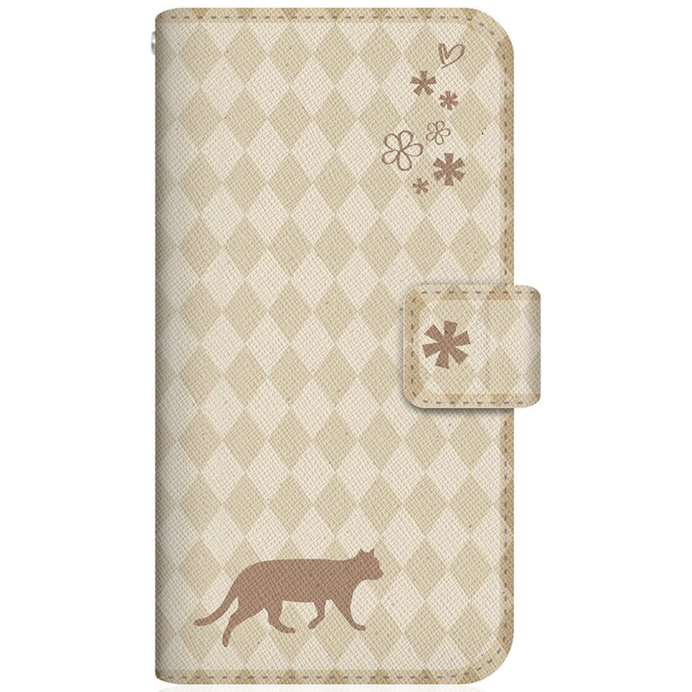 NYAGO 704SH スリム手帳型ケース NYAGO ノート フレンチ フラワー ダイアリー キャット シルエット ダイヤ柄 & てくてくお散歩だにゃん クリーム 704SH-BNG2S2462-78