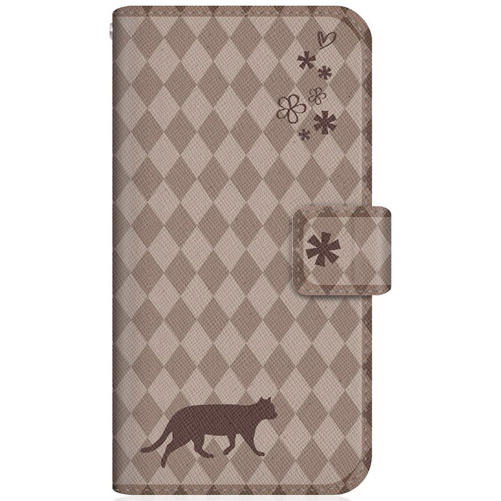 NYAGO 704SH スリム手帳型ケース NYAGO ノート フレンチ フラワー ダイアリー キャット シルエット ダイヤ柄 & てくてくお散歩だにゃん チョコレート 704SH-BNG2S2463-78