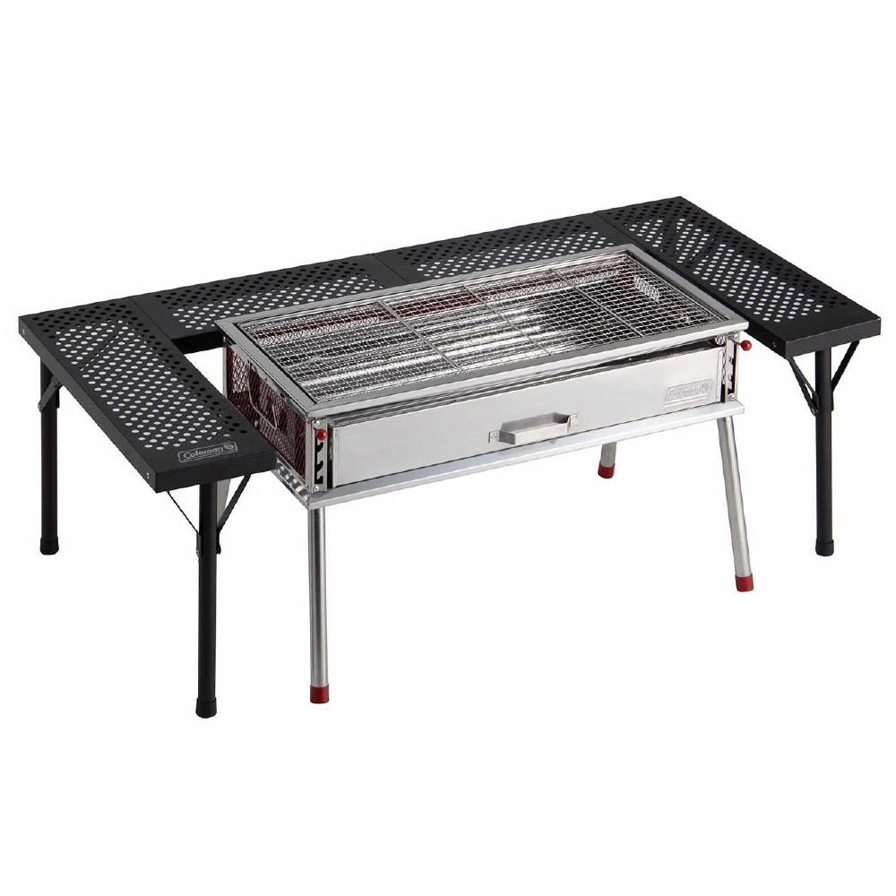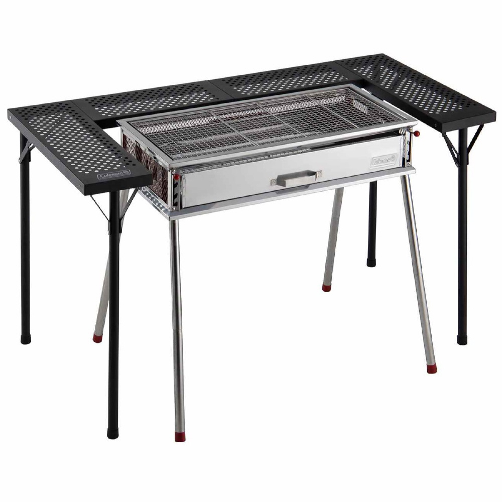 コールマンBBQグリルに合う2段階調整可能なBBQテーブル。BBQグリルを囲むようにおけば、みんなで食事を楽しむことができます。