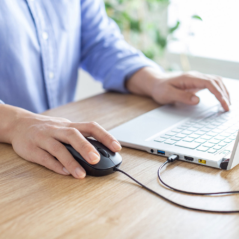 USB Type-Cコネクタを搭載した有線マウス。