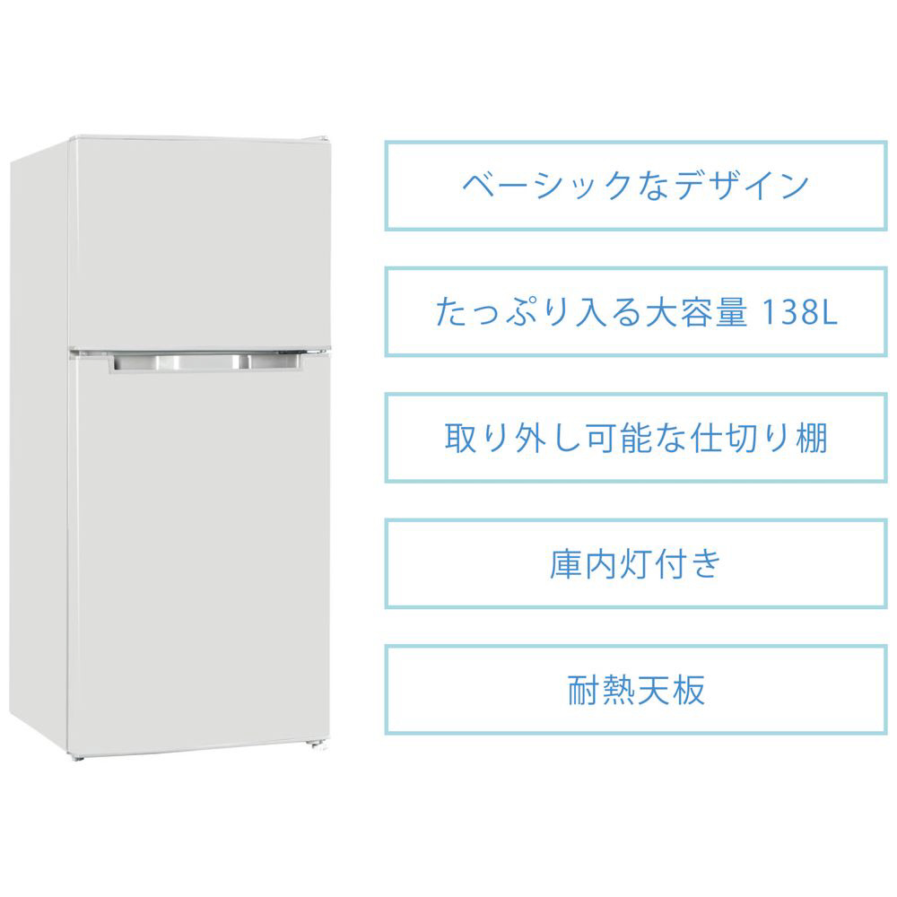 直冷式冷蔵庫 TOHOTAIYO ホワイト TH-138L2WH [138L /2ドア /右開き/左開き付け替えタイプ]