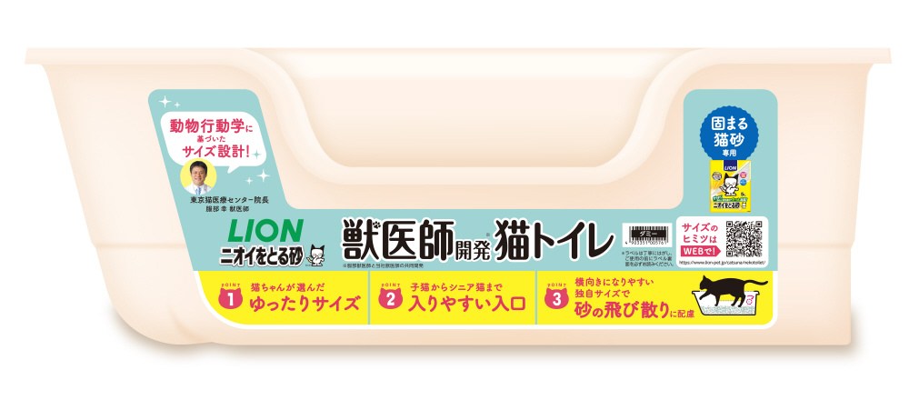 ・大・小2種類の穴のあいたスコップで、ライオンニオイをとる砂全シリーズに対応。
