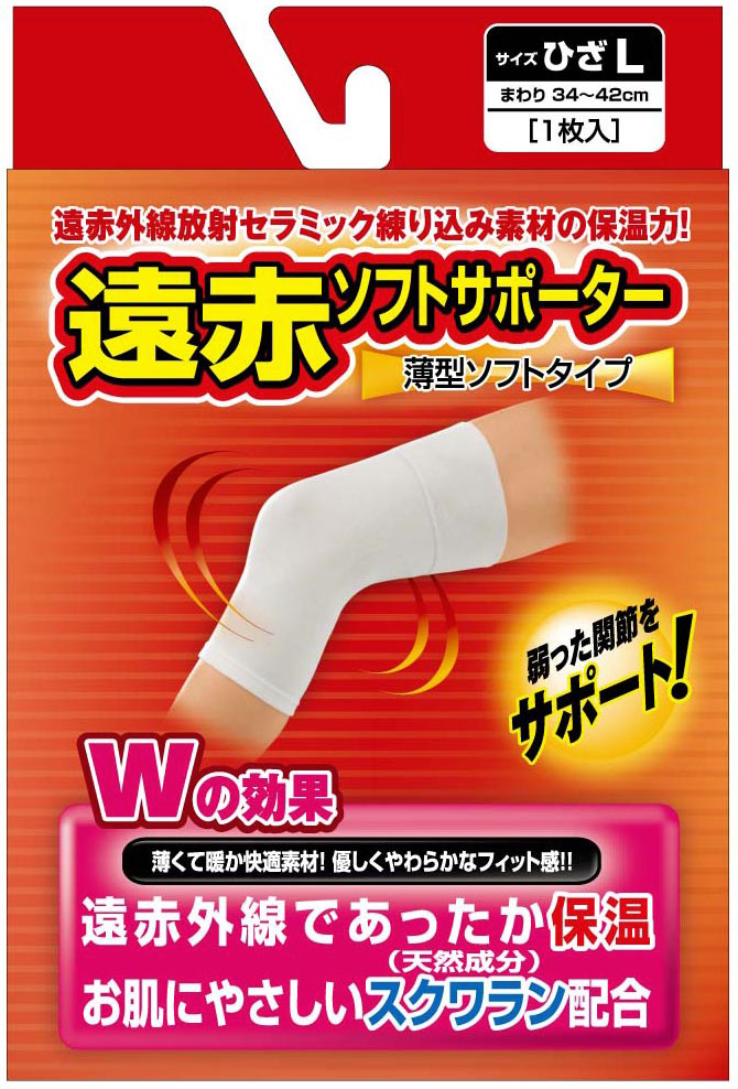 ●遠赤外線放射セラミック練りこみ素材の薄型ソフトタイプのサポーターです。