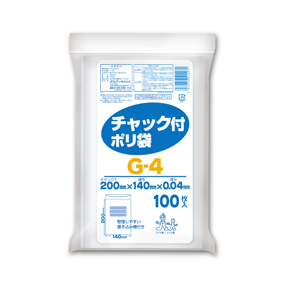 ツルツルタイプの低密度ポリエチレン(LDPE)製、0.04mm厚チャック付規格袋。