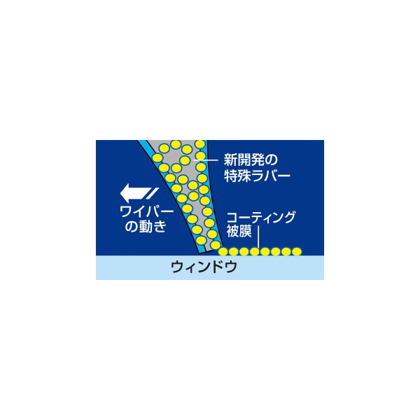 ●特殊ラバー採用によりワイパーを乾拭き作動(※)させることで撥水コーティング被膜をスピード形成します。※5分以上の乾拭きが必要です。