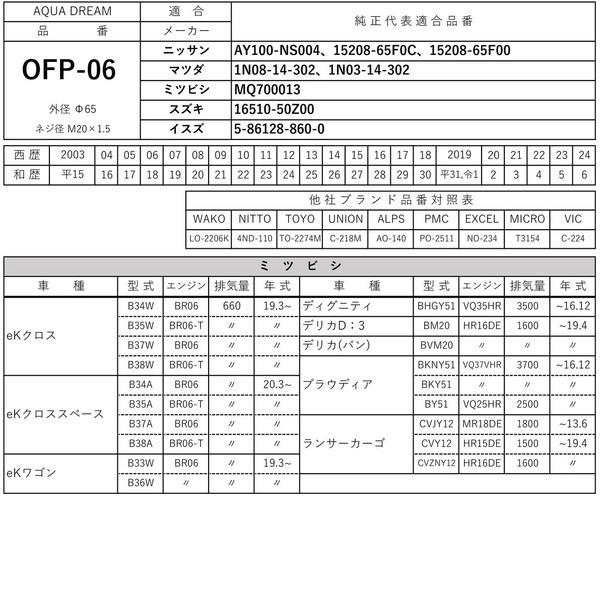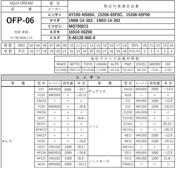 ■互換品番:「WAKO」LO-2206K ・ 「NITTO」4ND-110 ・ 「TOYO」TO-2274M ・ 「UNION」C-218M ・ 「ALPS」AO-140 ・ 「PMC」PO-2511 ・ 「EXCEL」NO-234 ・ 「MICRO」T3154