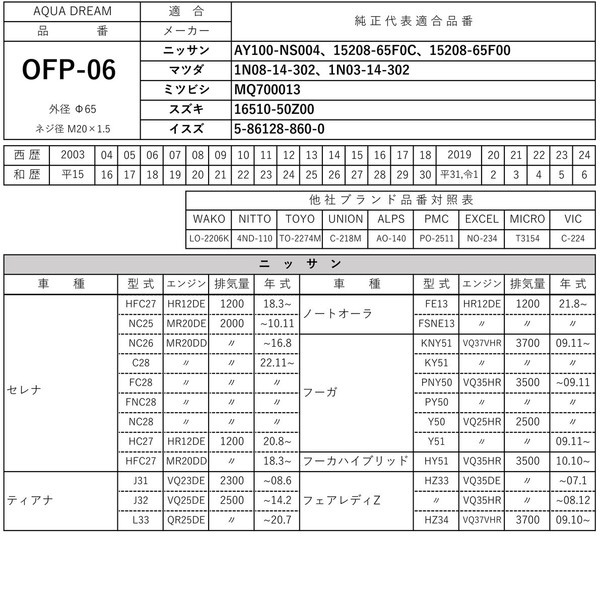 PLATINUM オイルフィルター ニッサン・マツダ・ミツビシ・スズキ・イスズ車用 (純正品番:AY100-NS004等) AD-OFP-06