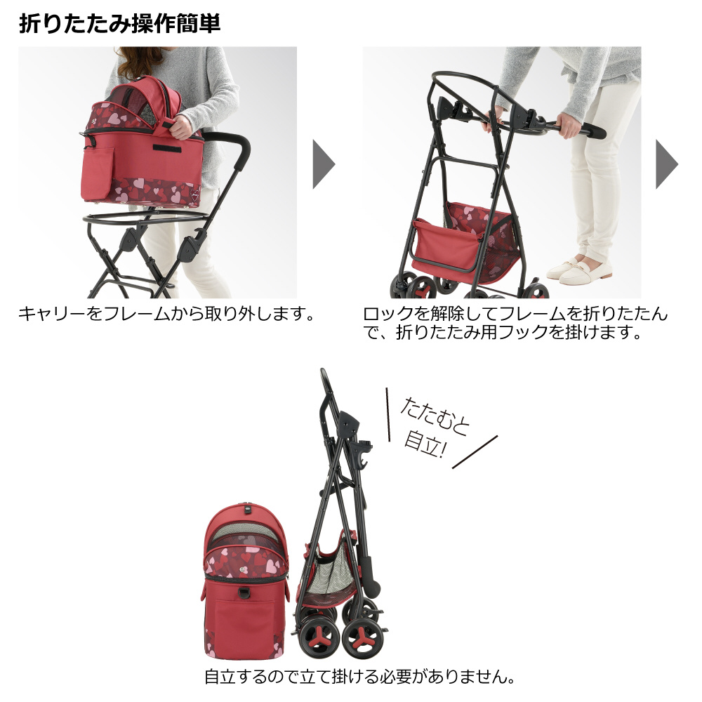 ●1頭飼いにちょうどいい!コンパクトで小回り上手。カートに!キャリーに!ドライブケージに!の3通りの使い方ができるのでペットと気軽にお出かけできます。