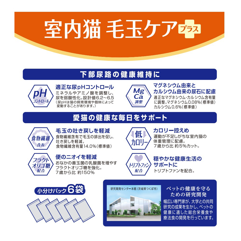 ●マグネシウムとカルシウムの適正バランス尿pHのコントロール、高い消化吸収性など最新の臨床栄養学の成果をフルに盛り込んでそれぞれの成長段階に最もふさわしい栄養設計をしています。ライフステージに加え猫の飼育環境などにもキメ細やかに対応します。マグネシウム由来とカルシウム由来の結石に配慮。毛玉排出のサポートにセルロースをプラス。