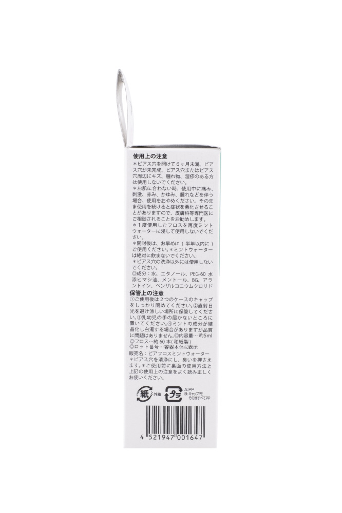 お肌にやさしい和紙フロスとハーブウォーターが汚れたピアス穴をスッキリきれいにします。