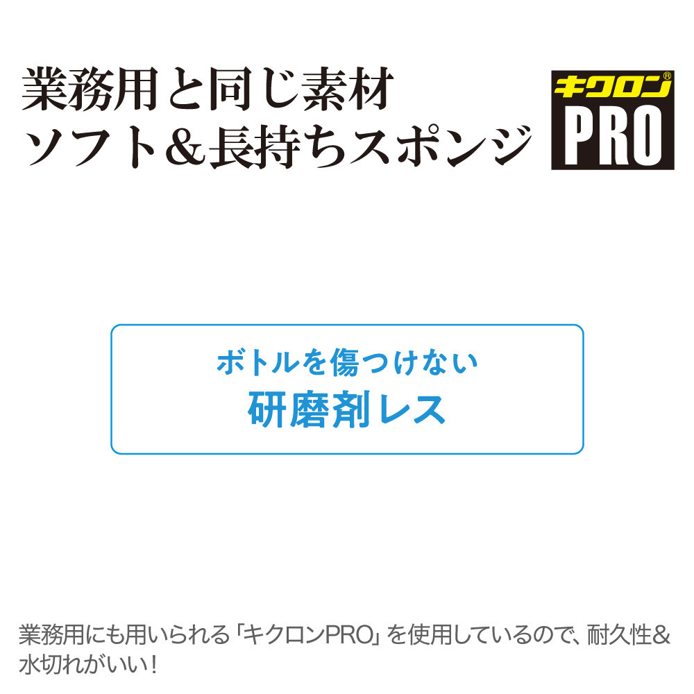 ボトルの底にもフィットするラウンド形状で、傷つきにくい研磨剤レス仕様です。