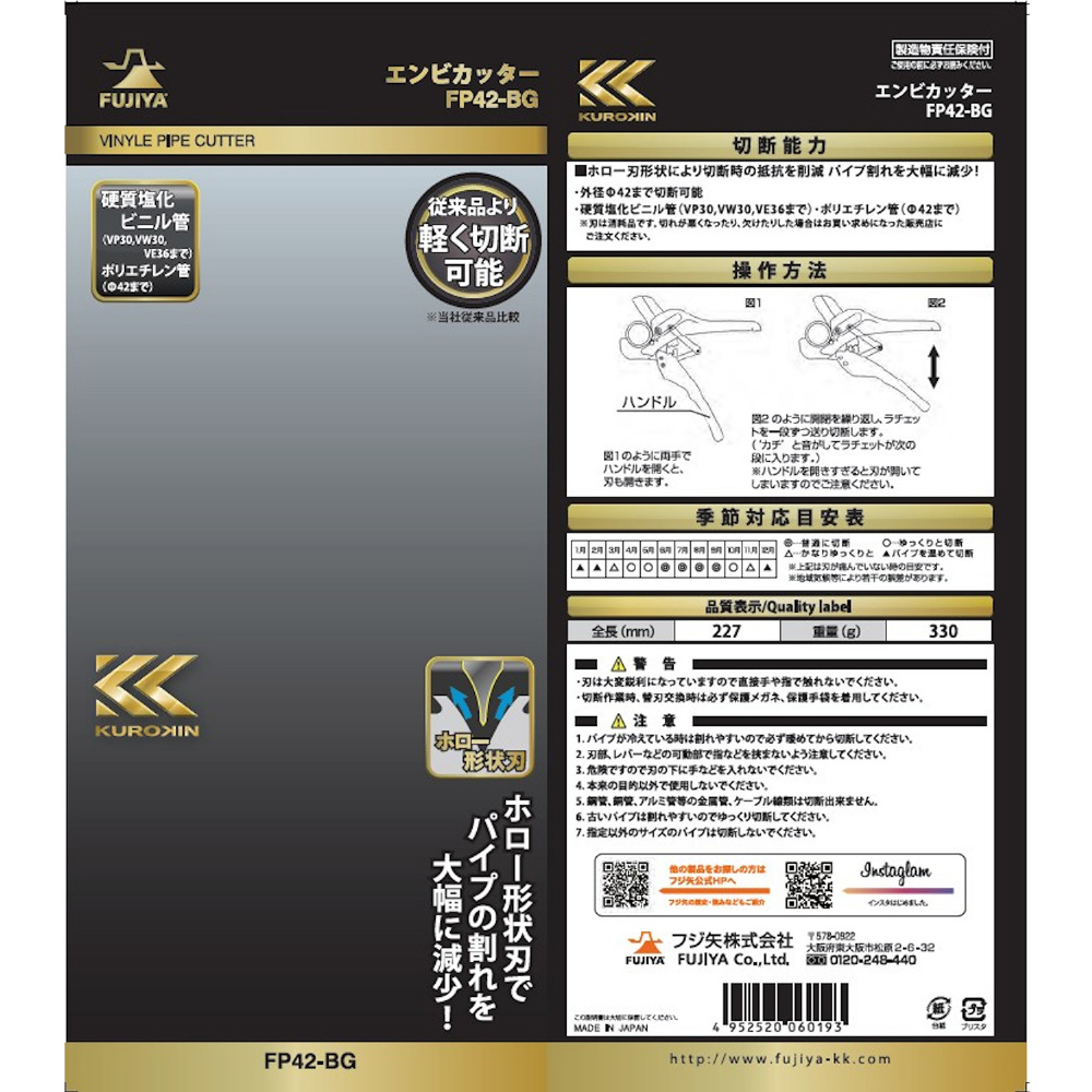 FP42-BG 塩ビ管カッター φ42mm 黒金