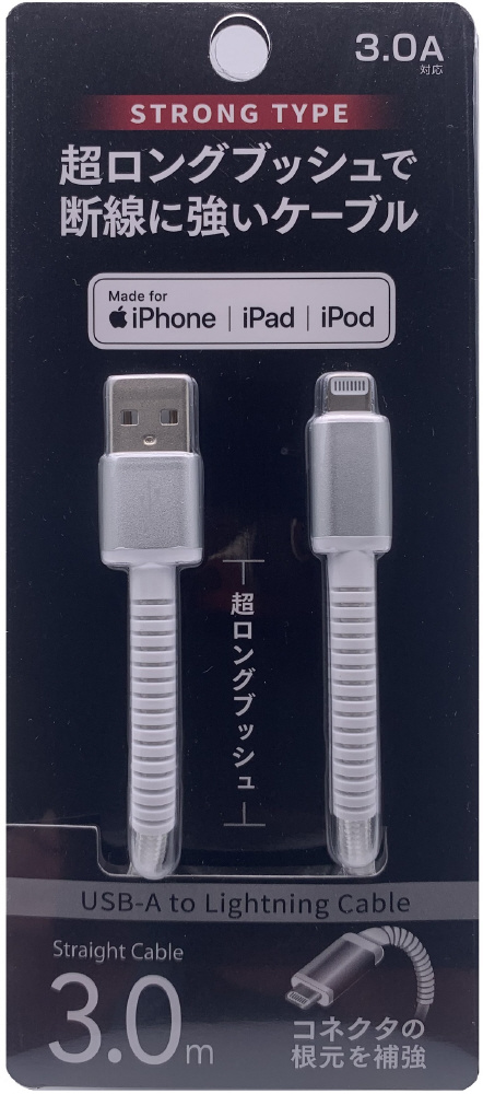 超ロングブッシュで断線に強いLightningケーブルです。