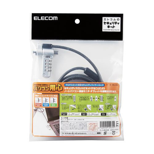 セキュリティワイヤーロック ダイヤルシリンダー錠 マルチ用 ESL-404