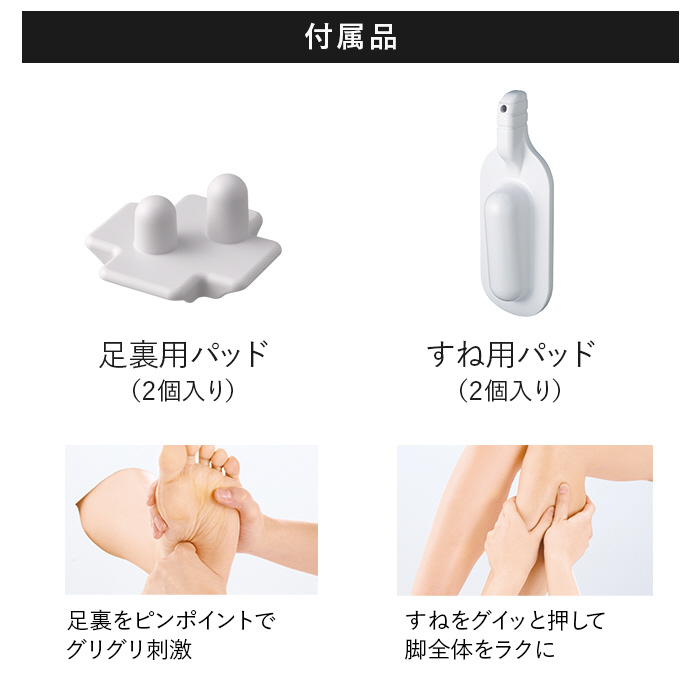 付属品 足裏用パッド×2、すね用パッド×2、ACアダプター