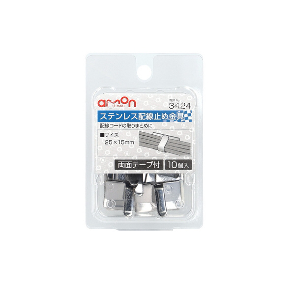 3424 ステンレス配線止め金具 25.0×15.0mm/10個入り シルバー 3424