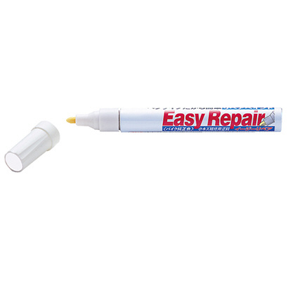 本来重ね塗りが必要なキャンディー、パール、メタリックの各色もイージーリペアでは一度塗りに調色し、簡単に補修できます。 イージーリペアフェルトペンでポンポンと押し付けながら「色を乗せて」埋める補修用簡易塗料です。