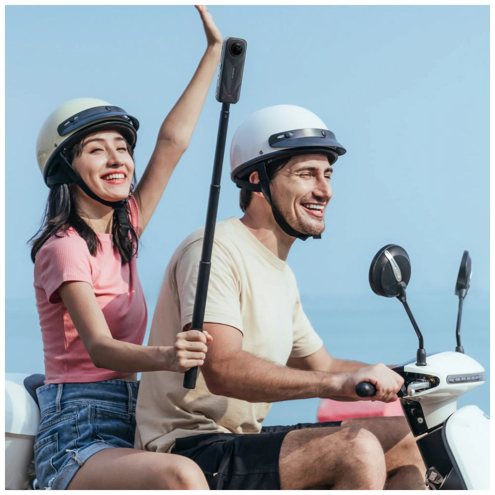 自撮り棒での手持ち撮影や、三脚での撮影が可能。「Insta360 見えない自撮り棒 + 三脚」