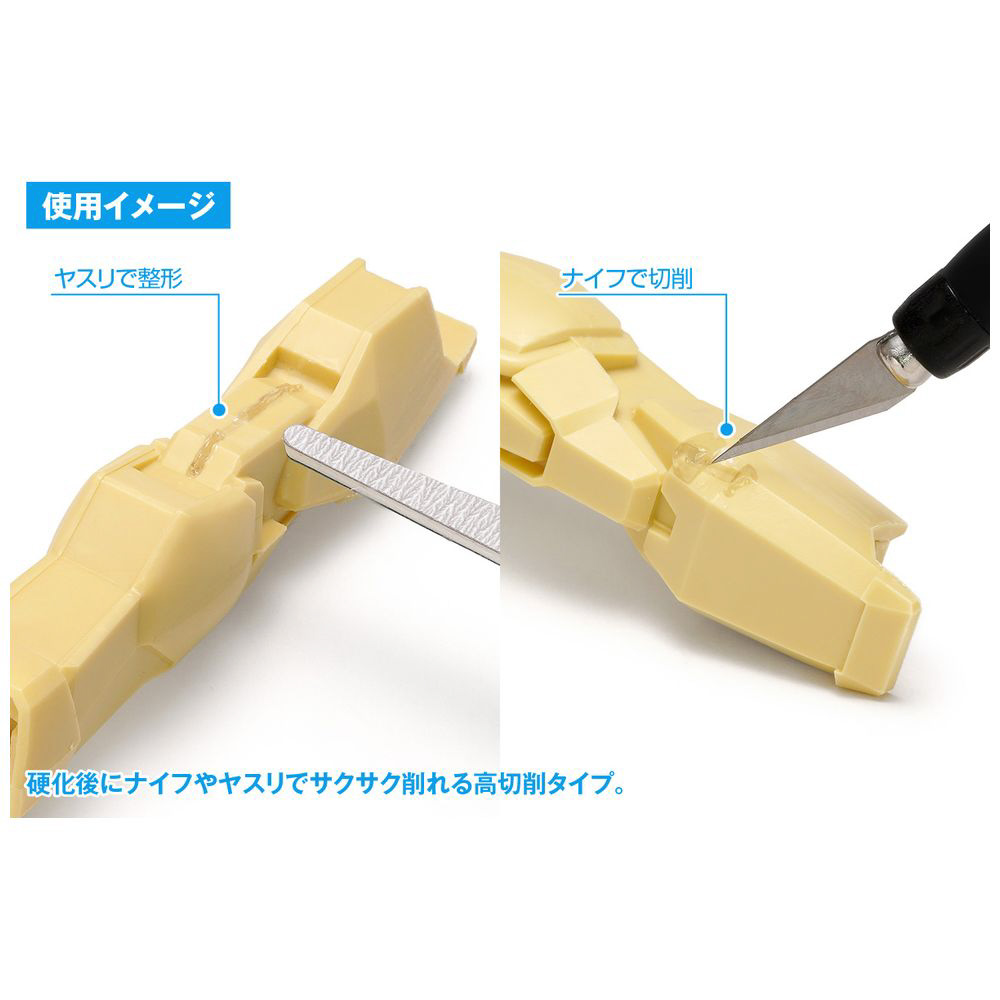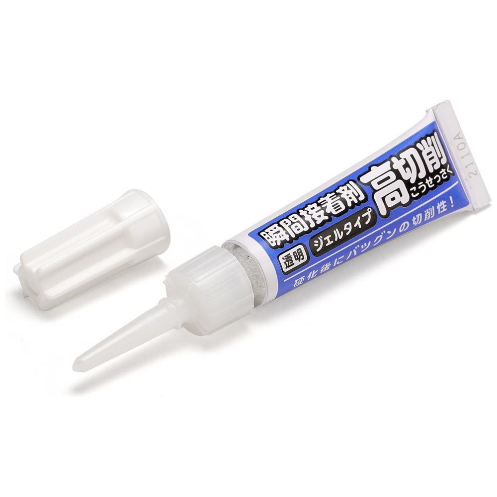 透明で硬化後にナイフやヤスリでサクサク削れる高切削タイプの模型用接着剤です。