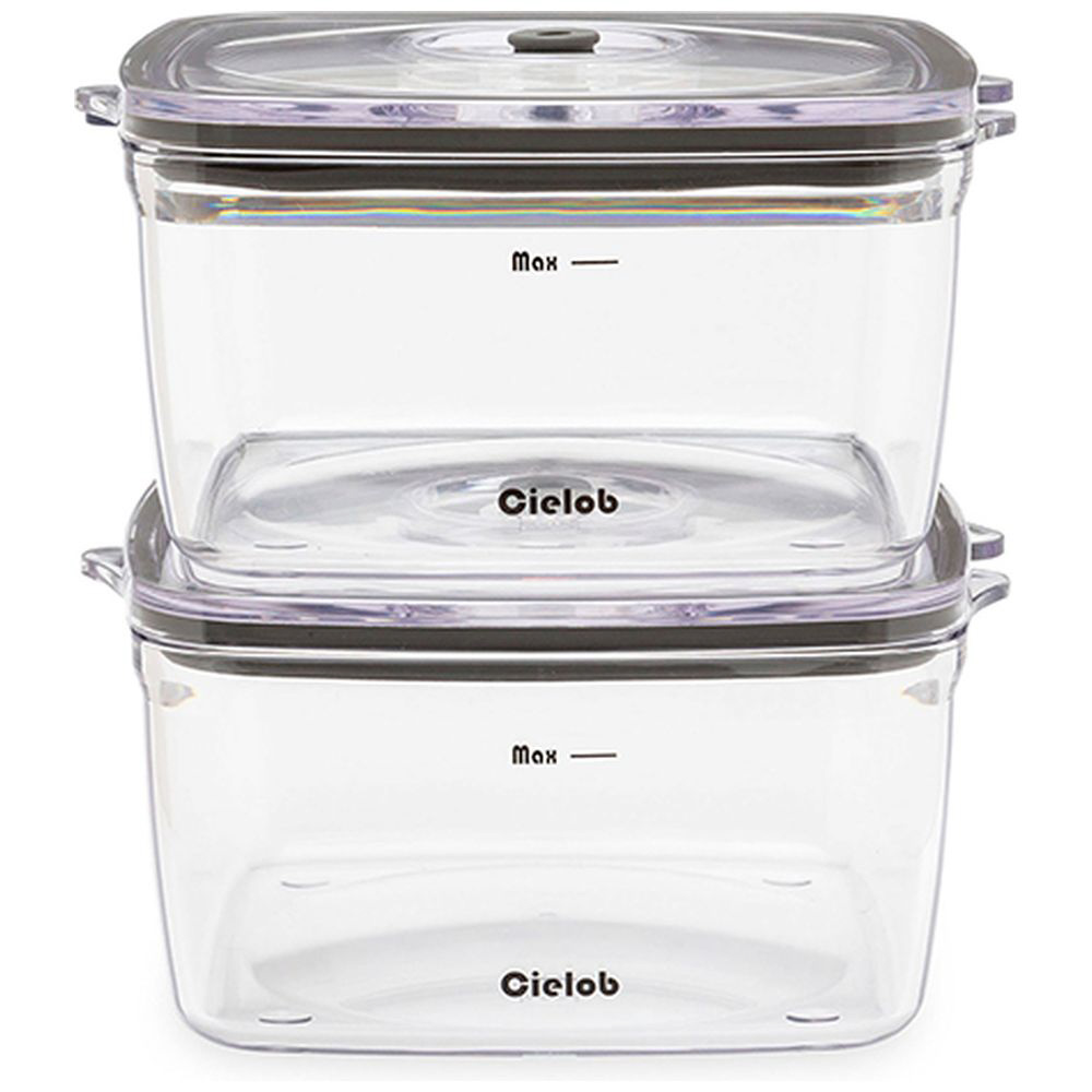真空キャニスター(スクエアタイプ)1L 2点セット Cielob(セーロブ) クリア VSF1-P2*2 [電子レンジ非対応/食洗器非対応]