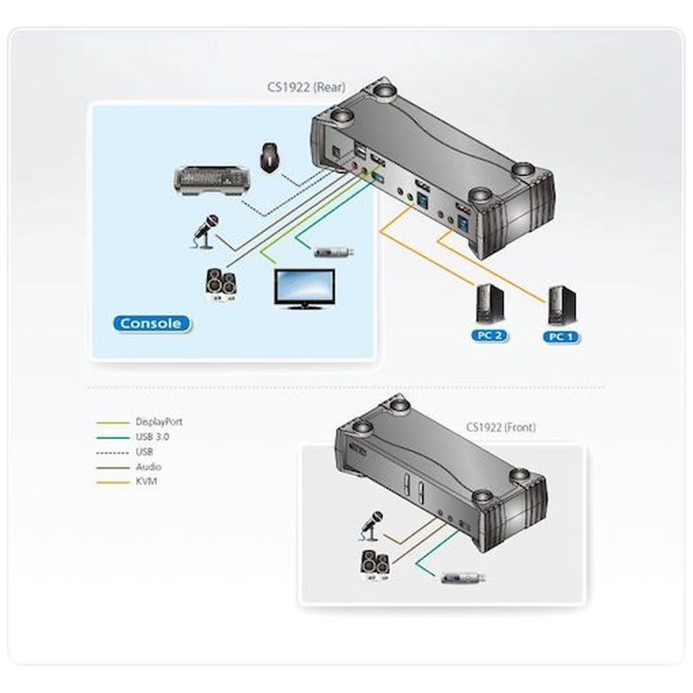 ATEN KVMP[[TM上]]スイッチ 2ポート/USB/DisplayPort/DCI 4K対応/USB 3.0ハブ搭載