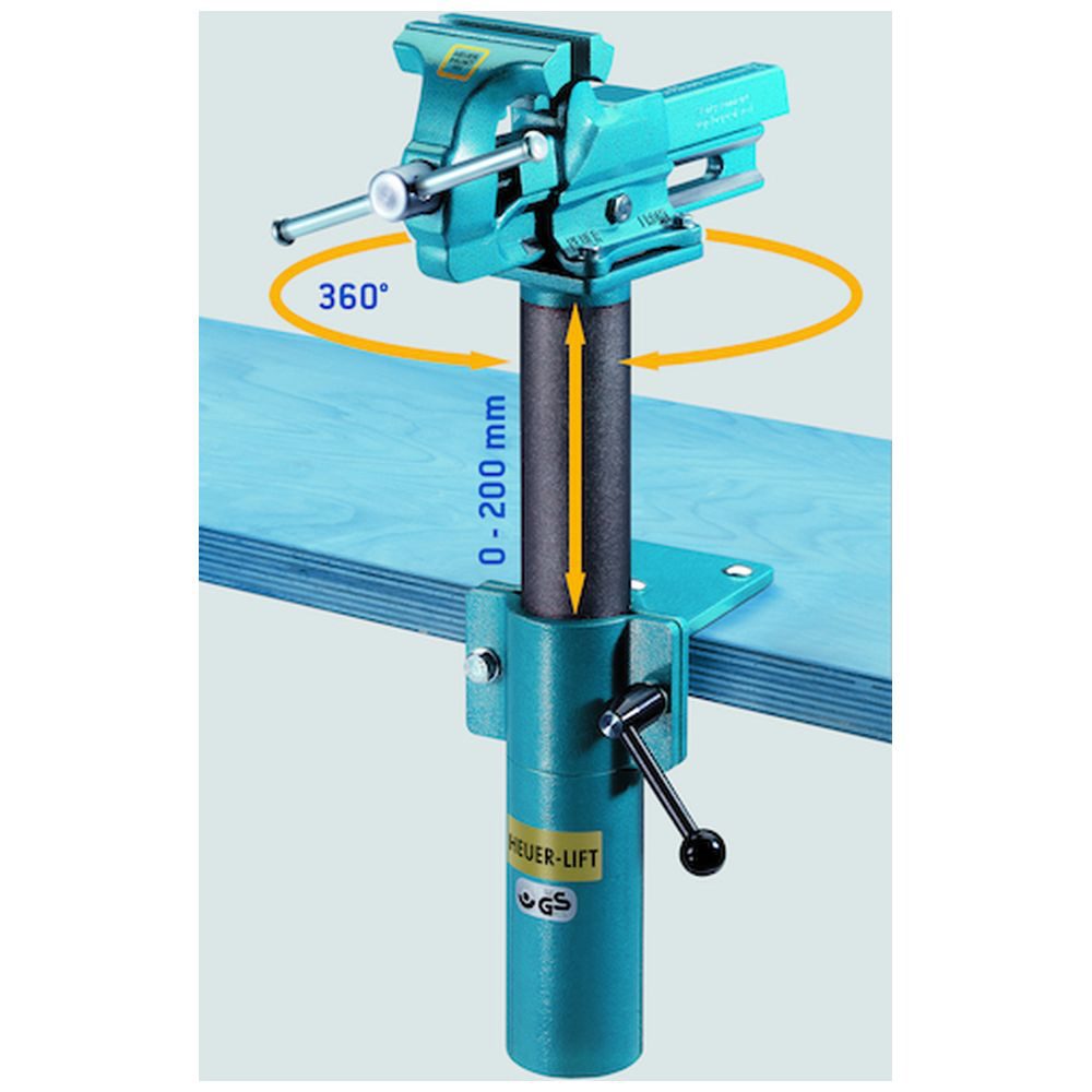 ■バイス本体を取り付けた状態で、高さは0mm〜200mmまで簡単に調節でき、360°回転可能です。