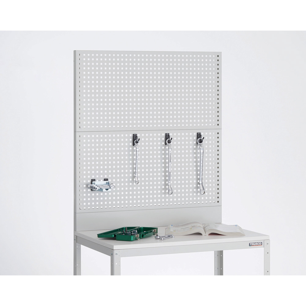 ■木製天板付なので組立・梱包などの軽作業が可能で、パンチングパネルも付いているので工具などの管理にも適しています。