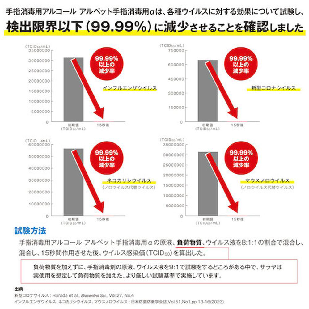 ノンエベロープウイルスをはじめ一般細菌、真菌など広範囲の微生物に作用する手指消毒剤です。