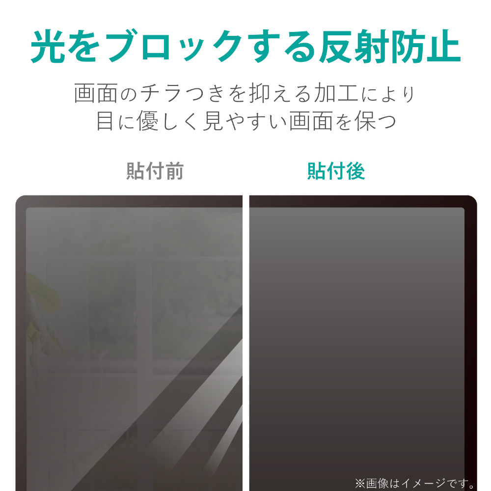■反射率1.6%と優れた低反射率で外光の反射、映り込みを防ぎ、目に優しく見やすい画面を実現した、反射防止液晶保護フィルムです。