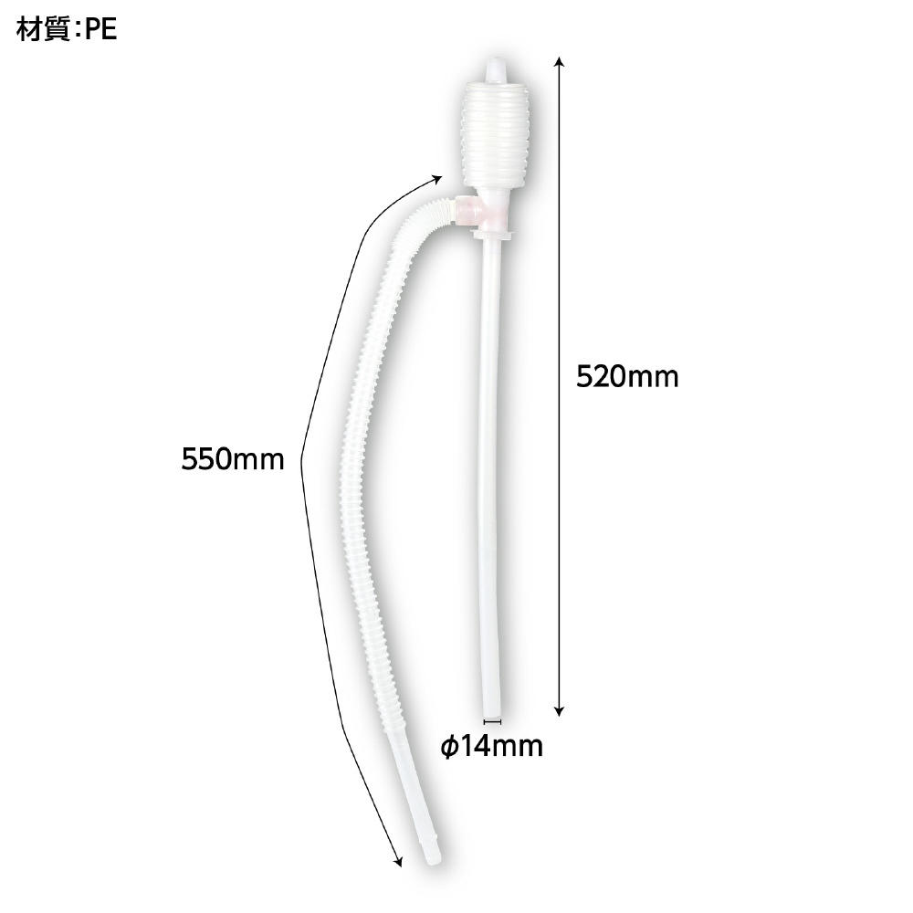 商品サイズ:差し込み部分:φ14mm、高さ:520mm、ホース長:550mm