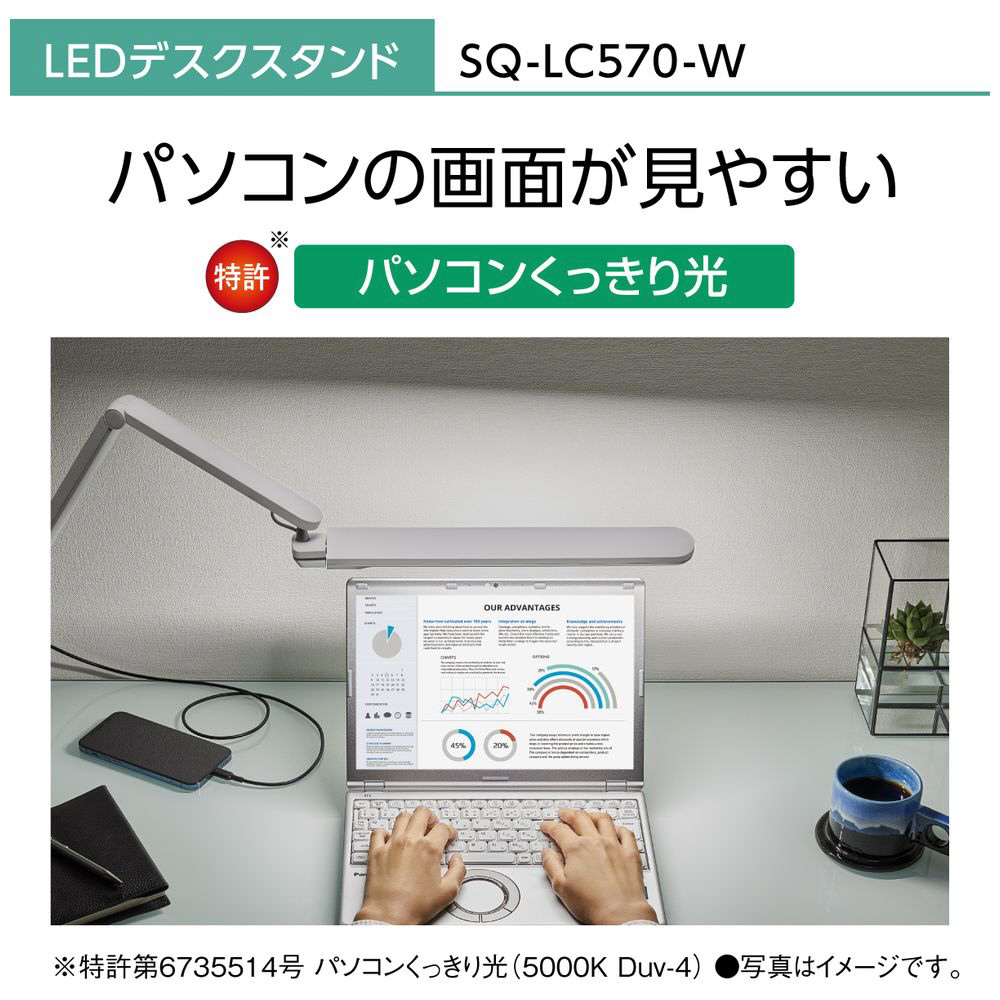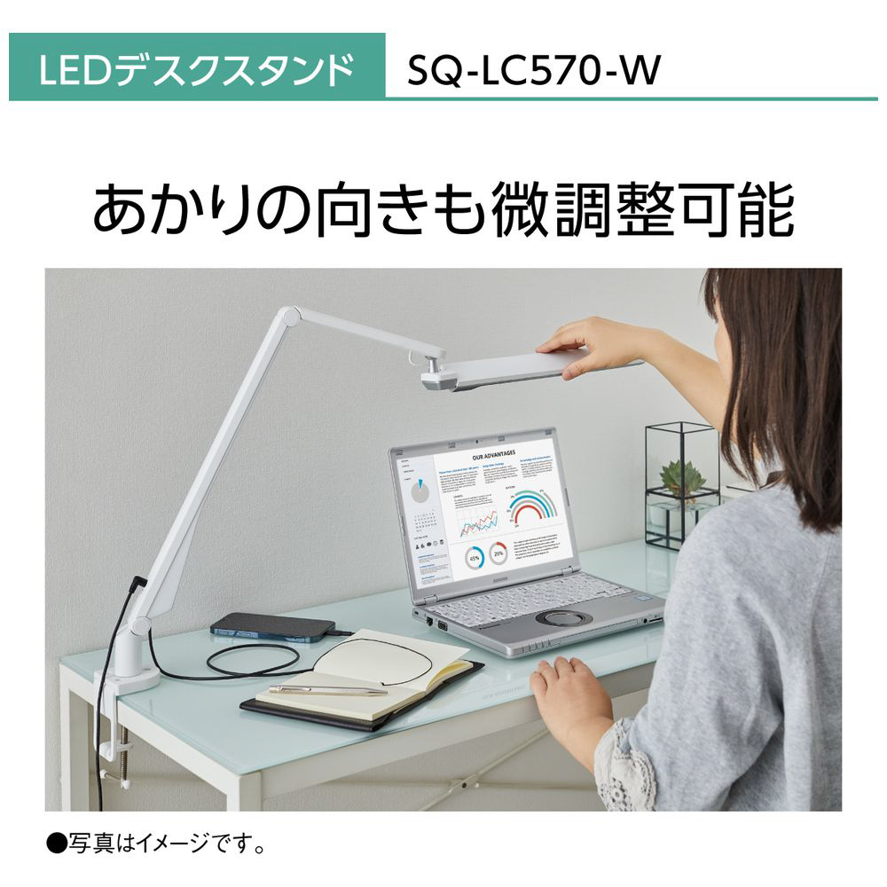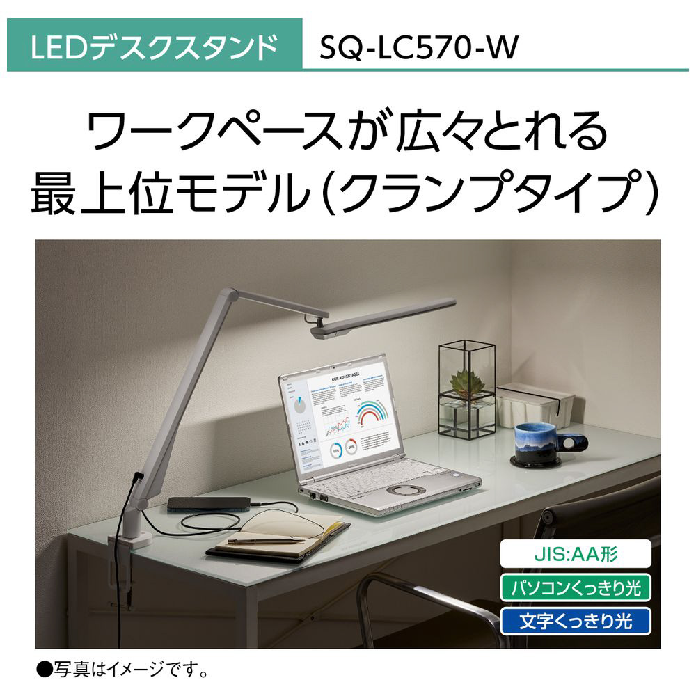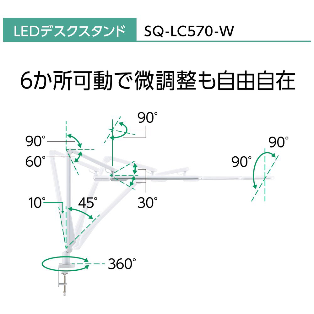 LEDデスクスタンド クランプタイプ ホワイト仕上×シルバー SQ-LC570-W [LED /昼白色]