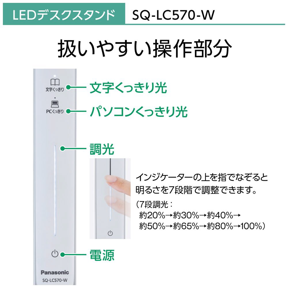 商品特長.1 パソコンの画面が見やすい「パソコンくっきり光」搭載 商品特長.2 紙面の文字が読みやすい「文字くっきり光」搭載 商品特長.3 JIS:AA形相当の明るさで新聞見開きサイズを明るく照らす 商品特長.4 USB端子付き 商品特長.5 6か所可動で使いやすく、非接触操作のタッチレススイッチ搭載
