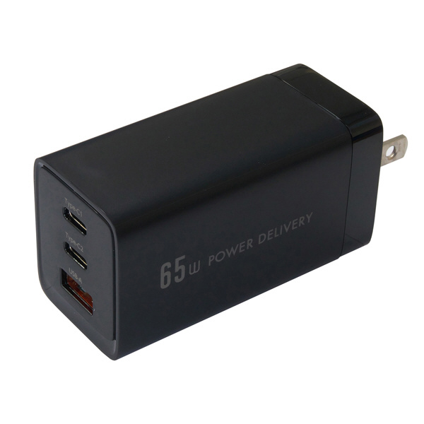 PowerDelivery(PD)対応USB-AC充電器 65W 3ポート(Type-C×2+USB-A×1) GaN使用 PPS出力対応 ブラック ACUC2M65ADBK