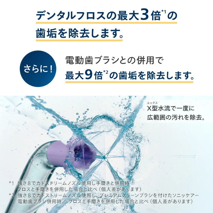 ■フロスの最大3倍の歯間の歯垢を除去(※1)ソニッケアーパワーフロッサーとの組み合わせ、クリーンモード、強さ8の場合