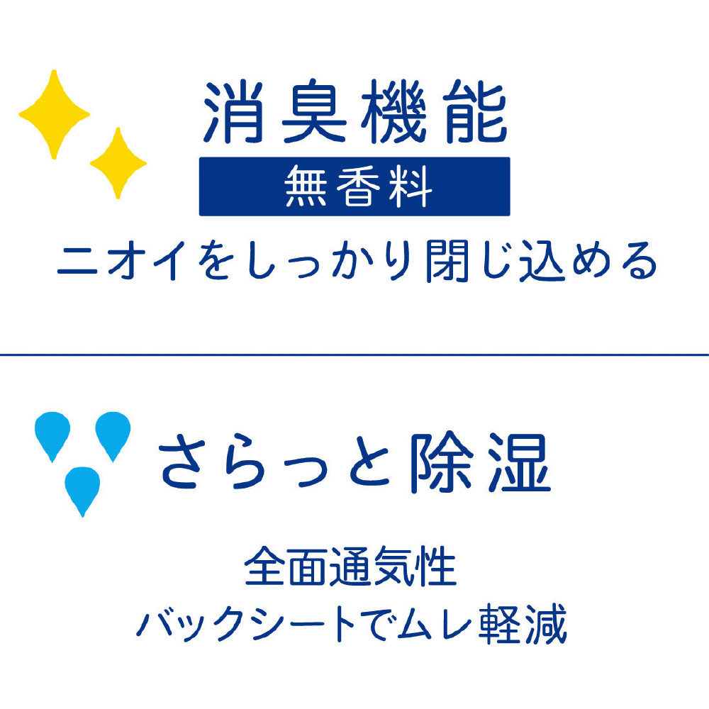 臭い分子を閉じ込める尿吸収ポリマーでニオイ安心。