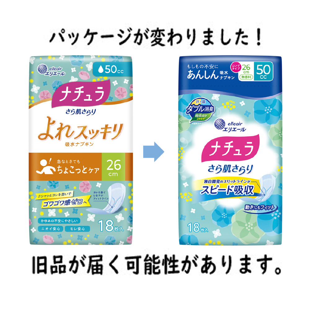 ナチュラ さら肌さらり よれスッキリ吸水ナプキン 26cm ロング 50cc 18枚入