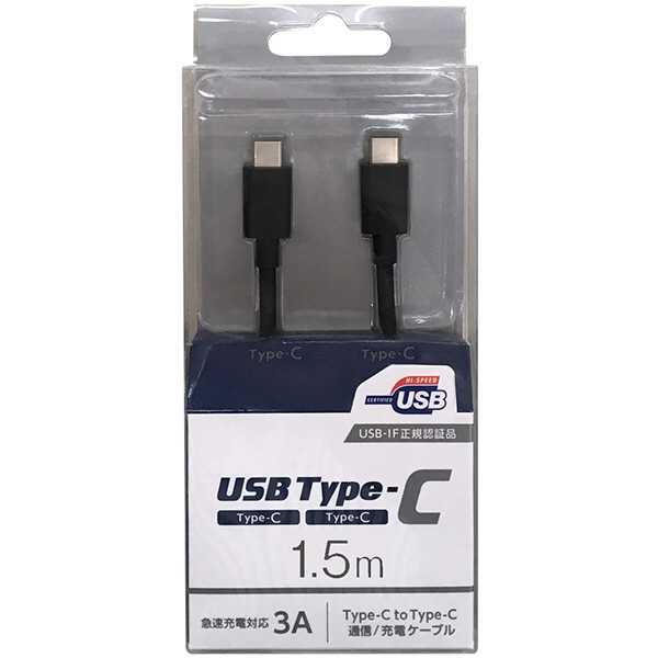 PD対応【USB-IF正規認証品】Type-C⇔Type-C通信・充電USBケーブル USB2.0 3A/60W対応 1.5m