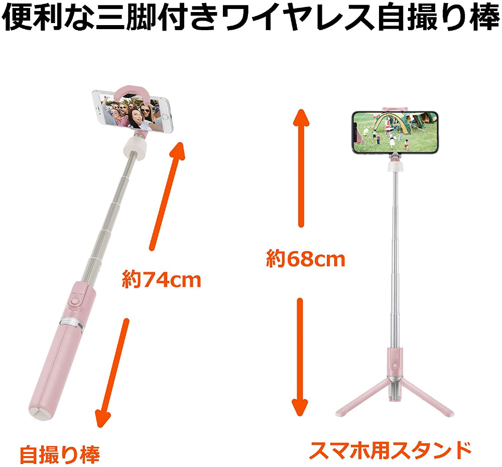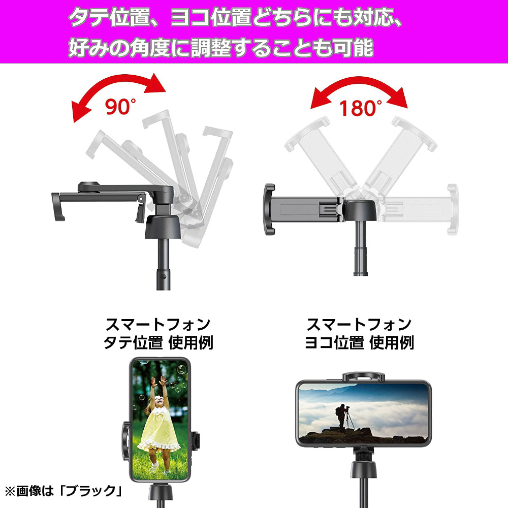 グリップを開いて置くだけの簡単設置。自撮り棒も引っ張るだけで伸ばせます。
