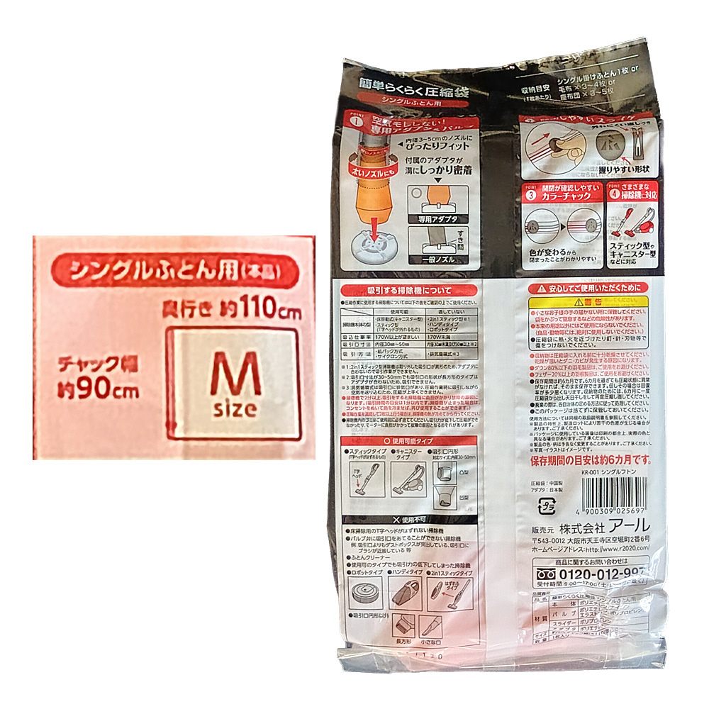 簡単らくらく圧縮袋シングルふとん用 1P 90×110cm KR-001