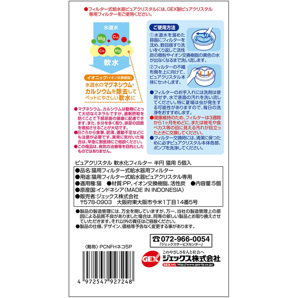 ピュアクリスタル 軟水化フィルター 半円 猫用 5個入