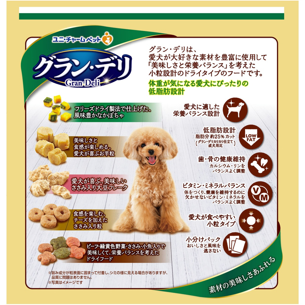 ・体重が気になる愛犬にぴったりの低脂肪設計※脂肪分約25%カット(グラン・デリカリカリ仕立て成犬用比)