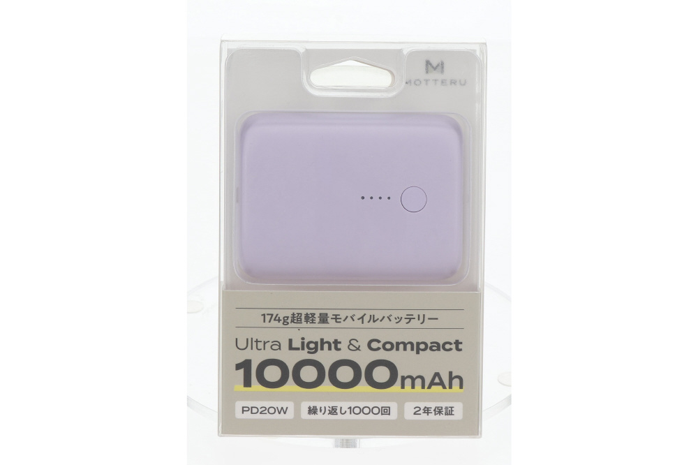 国内最小最軽量クラス モバイルバッテリー 10000mAh 付属ケーブル長: 約50cm ペールアイリス MOT-MB10001Z-PU [USB Power Delivery対応 /2ポート]